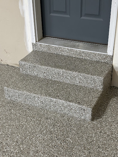 Slip resistant material is added to the top coat to create an anti-slip concrete coating that is safe and looks great.